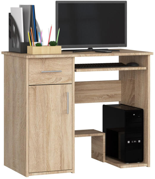 Modern számítógépasztal Sonoma tölgy kivitelben, praktikus tárolóhelyekkel és kihúzható billentyűzettartóval. Ideális választás otthoni irodába vagy munkahelyre, strapabíró laminált lapból készült kivitelezéssel. Sokoldalú és stílusos munkaterület otthonra és irodábaA Jay számítógépasztal tökéletes kombinációja a funkcionalitásnak és az elegáns designnak. A