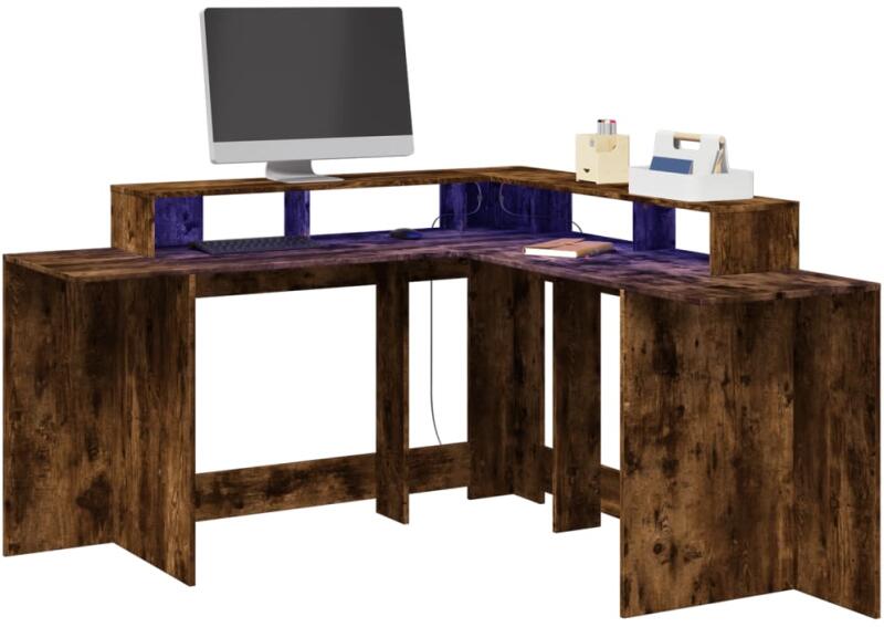 Ez a bőséges tárolóhellyel rendelkező, tartós szereketű és LED-világítással ellátott íróasztal tökéletes egy rendezett és elegáns munka- vagy játékkörnyezet kialakításához. Stabil és tartós anyag: A szerelt fa tartós és stabil anyag sima felülettel, amely ellenáll a nedvességnek, a vetemedésnek és a hasadásnak, így megbízható választás különféle célokhoz.