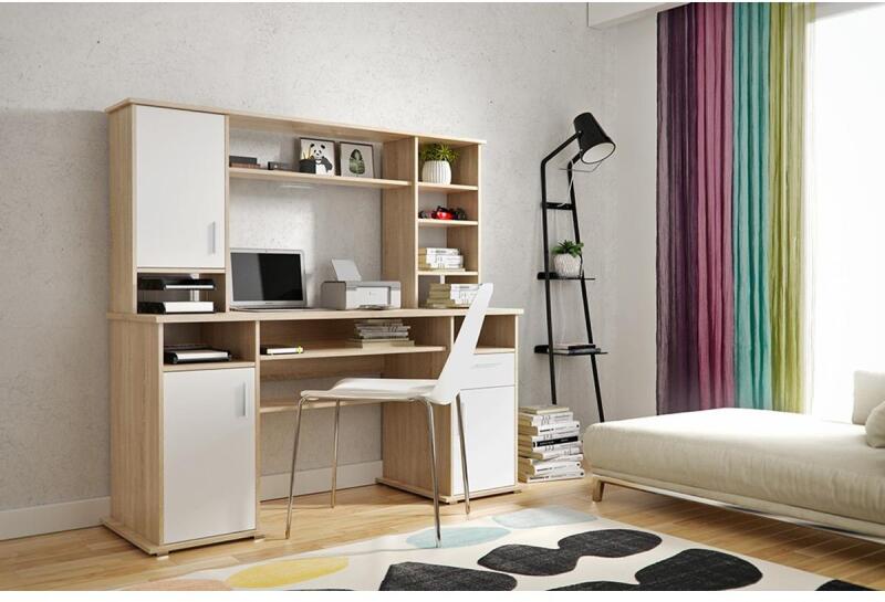 Vigo íróasztal sonoma-fehér Az VIGO termékcsalád stílusos íróasztala, mely a sonoma tölgy és a fehér színének és a bútor praktikus kialakításának köszönhetően, bármelyik hálószobában/dolgozószobában megállja a helyét. Méret (SzéxMaxMé): 160 x 154 x 60 cm Szín: Sonoma/feh ér Elzárás: ABS - Mindigbútor