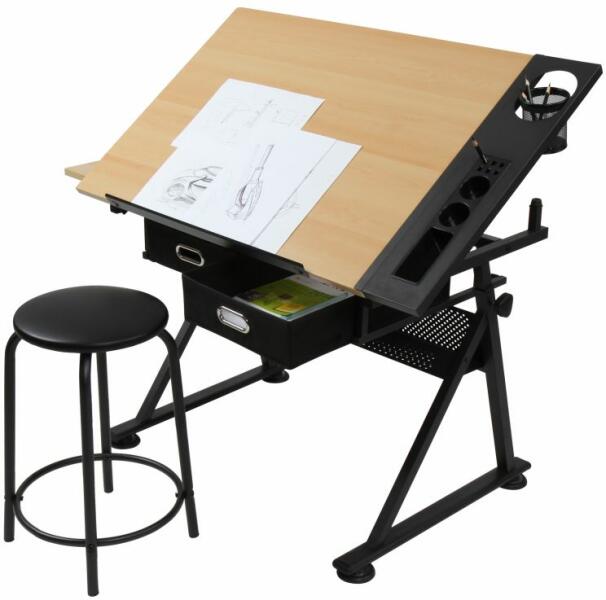 Rengeteg tárolóhellyel és összecsukható táblával minden irodának vagy iskola osztálynak, vag yothon dolgozószoba kialakításához nélkülözhetetlen bútordarabja. Például egyszerre használhat számítógépet és vásznat. A csomag egy széket, az asztal 2 nagy fiókot tartalmaz. Ferde munkafelülettel, tollpolccal és rajzkészletekkel rendelkezik a jobb oldalon, egy másik munkap