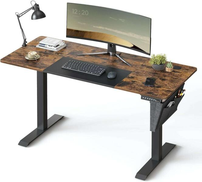 Állítható magasságú íróasztal, elektromos, fokozatmentesen állítható, toldott tányér, 4 magasság, szövettáska, 140 x 60 x (72-120) cm, acélból, vintage barna/fekete [4 memóriagomb és ütközésgátló] Az elektromos íróasztal magasságát 72-120 cm között állíthatja be, és 4 kívánt magasságot menthet el. Van ütközésvédelmi rendszer is [Zseb és horgok az oldalakon]