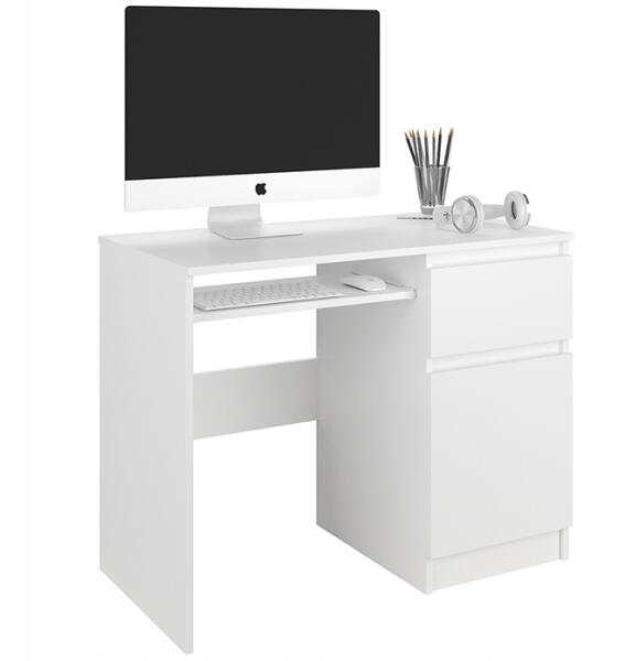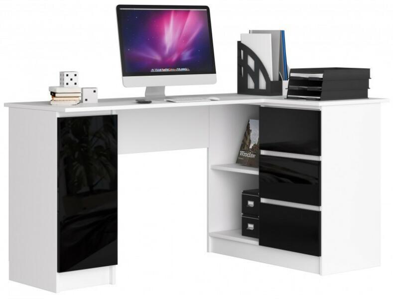 Jobb oldali sarok számítógépasztal fiókokkal és szekrénnyel - B20 Matt fehér test | Fényes fekete előlapokAsztal 16 mm-es kopásálló laminált lapból. A látható élek ABS élzáróval vannak ellátva a nagyobb sérülésállóság érdekében. Sarok íróasztal. Méretek: Hosszúság - 155 cm Magasság - 77 cm Mélység - 85 cm - Az asztal 16 mm-es kopásálló Kronospan laminált l