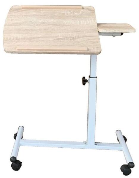 Tudor laptop asztal, fehérített tölgy - Praktikus, mobil laptop asztalka, fehér fém vázzal, fehérített tölgy színű MDF asztallappal, görgőkkel. Az asztallap magassága és döntési szöge is állítható. Mérete 68x38x55-79 cm. Lapra szerelten szállítjuk.
