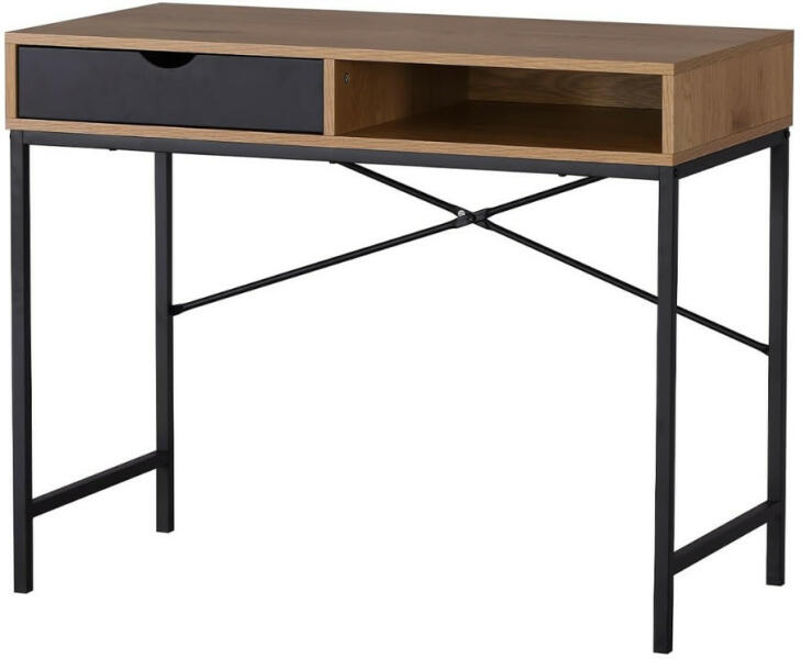 KIFUTÓ TERMÉK! Korlátozott darabszámban! Nagy teherbírású fiókos íróasztal Loft / Industrial stílusban, 95x48cm munkafelülettel | Raktárról | Azonnali kiszállítással | Kedvező áron Intenso loft stílusú íróasztal / számítógépasztal fiókkal, tágas 95 cm-es szélességgel. A fekete acél váz, valamint a tölgy árnyalatú bútorlap modern, esztétikus látványt nyújt,
