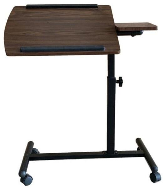Tudor laptop asztal, dió - Praktikus, mobil laptop asztalka, fekete fém vázzal, dió színű MDF asztallappal, görgőkkel. Az asztallap magassága és döntési szöge is állítható. Mérete 68x38x55-79 cm. Lapra szerelten szállítjuk.