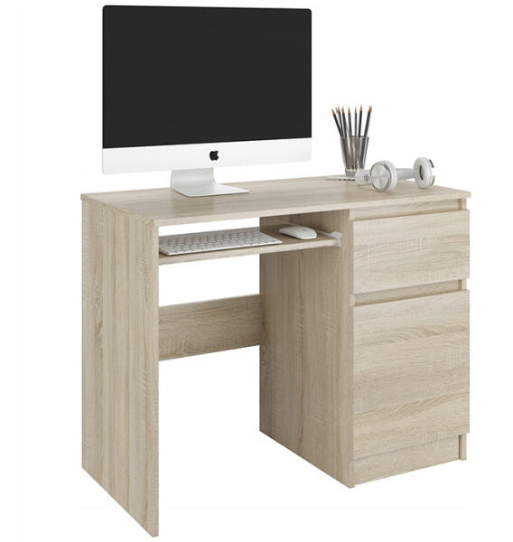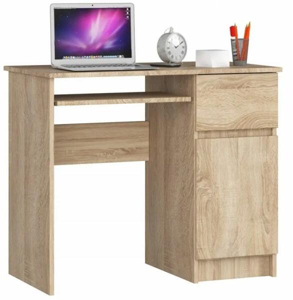 A Piksel íróasztal egy kis íróasztal, amely sok helyet biztosít a legszükségesebb iskolai dolgoknak. Az ajtóknak köszönhetően rengeteg füzetet és könyvet tud tárolni. Az íróasztal 90 cm hosszú, és kiválóan alkalmas kis és közepes méretű helyiségekbe. A PIKSEL 90 cm-es számítógépes íróasztal SONOMA színben tökéletesen illik kis terekbe. Kiválóan működik iskola