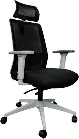 fekete hálós háttámla, állítható deréktámasz szürke váz állítható magasságú fejtámla fekete szövet kárpitozású ülőlap 3D állítható karfa: magasság, előre-hátra, forgatható, puha támfelület 4 pontos szinkronmechanika (antishock), automatikus súlybeállás műanyag lábkereszt d. 700, d. 50 parkettagörgőkteherbírás: 110 kg napi használati idő: 5-7 óra - teljes