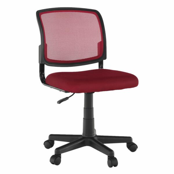 Kárpit anyaga: háló A szövet kopásállósága: 90 000 Martindale Kárpit színe: sötétpiros Lábkereszt anyaga: műanyag Lábkereszt színe: fekete Méretei (SzéxMéxMa): 47x42x80/91 cm Állítató ülésmagasság: 39-50 cm Ülésmélység: 42 cm Ülésszélesség: 47 cm Háttámla magassága: 40 cm Háttámla szélessége: 45,5 cm Teherbírás: 90 kg Forgó Kerekeken Bontásban szállítv
