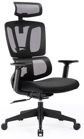 fekete hálós háttámla különálló, fix deréktámasz állítható magasságú fejtámla 1D karfa puha támfelület automata szinkronmechanika (antishock) műanyag lábkereszt d. 700, d. 60 parkettagörgőkteherbírás: 110 kg napi használati idő: 5-7 óra - teljes magasság: 117-127 cm - ülésmagasság: 45-54 cm - teljes szélesség: 70 cm - ülésszélesség: 50 cm - ülésmélység: 43