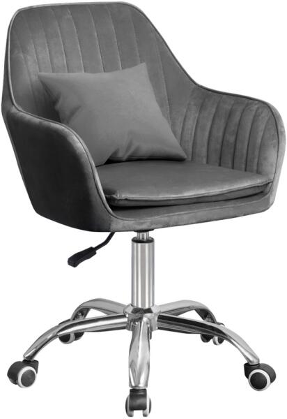 Irodai szék KLIAN Anyag: Velvet szövet/króm Szövet kopásállósága a Martindale-teszt szerint: 85 000 ciklus Szín: szürke/króm Méretek (SzéxMéxMa): 42x55x80-90cm Ülés magassága: 42-52 cm Ülés mélysége: 47 cm Háttámla (SzxMa): 44,5x39,5 cm Ülés szélessége: 42 cm Kartámla legalacsonyabb része: 20 cm Kartámla legmagasabb része: 24 cm Párna méretei SzxMa: 28x28 cm Teherb