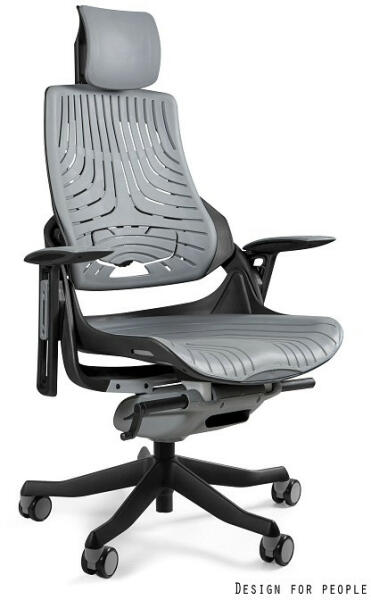 MERRYFAIR WAU exkluzív vezetői irodai szék Különleges elasztomer háttámlával és ülőfelülettel, szürke színben Állítható magasságú és dőlésszögű fejtámlával Állítható magasságú háttámla Állítható mélységű deréktámasz "Csúszó" mechanizmus : Az ülés és a háttámla forgástengelye (vízszintes) a csípőízület közelében helyezkedik el. Ez a megoldás
