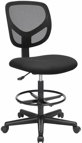 Irodai szék karfa nélkül, Ülésmagasság 55-75 cm, Magas Forgószék állítható lábtartóval, Terhelhetőség 120 kg, Fekete Az üléskényelem az első: a rendkívül rugalmas habszivaccsal kárpitozott, ergonomikus ülés kényelmes érzést nyújt, akár a konyhában, akár otthoni irodában, művészeti stúdióban, irodában vagy a pénztárnál dolgozik. Állítható magasságú lábt