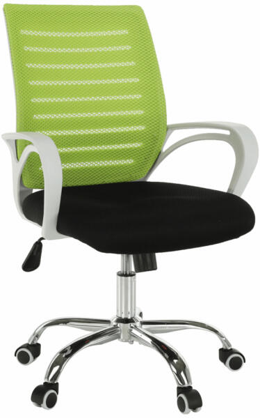 Irodai szék, zöld/fekete/fehér/króm, OZELA Irodabútorok > Irodai székek Irodai szék OZELA Anyag: háló/műanyag/fém A szövet kopásállósága: 90 000 Martindale Szín: zöld/fekete/fehér/króm Méretek (SzéxMéxMa): 53x60x91-101 cm Ülésmagasság: 44-54 cm Ülésmélység : 49 cm Ülésszélesség : 45 cm Háttámla szélessége: 45 cm Háttámla magassága: 50 cm Terhelhetőség: