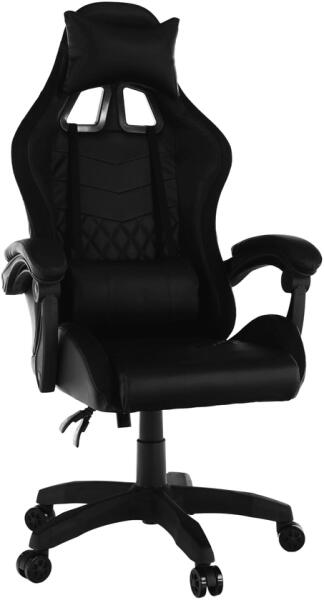 Anyag: ekobőr/műanyag A textilbőr kopásállósága: 100 000 Martindale Szín: fekete Méretek (SzxMéxMa): 64x60x127-137 cm Állítható ülésmagasság :43-53 cm Ülés szélessége: 37-51 cm Ülésmélység: 49 cm Háttámla magassága: 84 cm Háttámla szélessége: 53 cm Maximális teherbírás: 120 kg Kéztámlák Kárpitozott támlák kézre Pozicionáhatló háttámla Párnákkal a hát