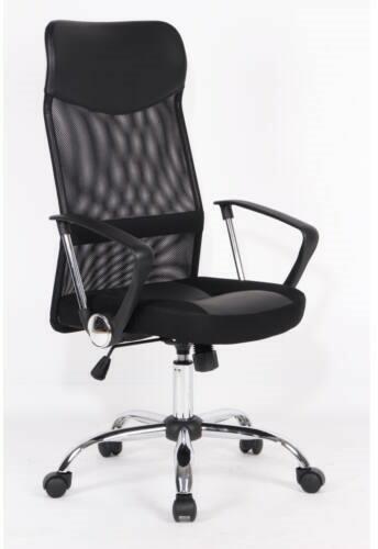 Danas irodai forgószék MESH háttámlával, fekete, 9209902 Magas háttámlás, króm csillaglábbal ellátott, karfás, kényelmes irodai forgószék. Az ülőfelület műbőr kárpitozású, a háttámla hálós mesh textil kialakítású.