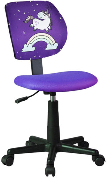 Zumbo forgószék, egyszarvú mintás Forgószék ZUMBO egyszarvú mintás Kényelmes lila ülőfelületű és háttámlájú forgószék, egyszarvú mintával. A forgószék állítható magasságú. Méretei: (SzéxMéxMa) 38 x 45 x 77-89 cm A szék maximális terhelhetősége 70 kg. Az ülés magassága 41-53 cm. - Mindigbútor