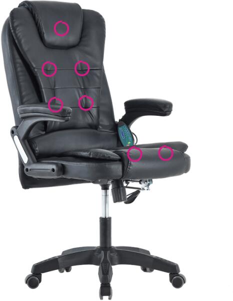 Anyag: ekobőr/műanyag A szövet kopásállósága a Martindale teszt szerint: 100 000 ciklus Szín: fekete Méretek (SzxMéxMa): 65x71x110-120 cm Ülés magassága: 46-56 cm Ülés mélysége: 51 cm Kartámasz szélessége: 7 cm Teherbírás: 110 kg Súly: 15,3 kg Háttámla (SzxMa): 52x67cm Ülés (SzxMé): 52x51 cm Műanyag alsó talapzat és karfa A karfa ekobőrrel van kárpitozva Masszázs
