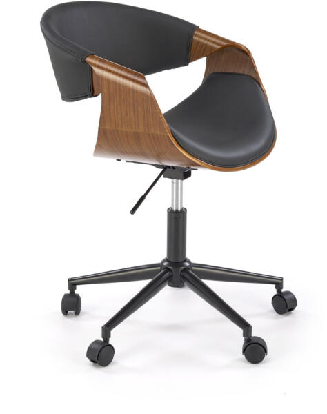 BILBO irodai szék, fekete / dió BILBO irodai szék, fekete / dió Méretek: 55/55/72-82/43-53 cm Egyszerű mechanizmus, hajlított rétegelt lemez / eko bőr Szín: dió / fekete