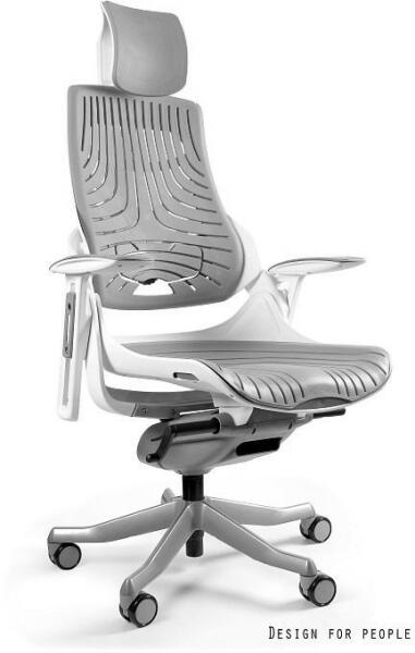 MERRYFAIR WAU exkluzív vezetői irodai szék Különleges elasztomer háttámlával és ülőfelülettel, szürke színben Állítható magasságú és dőlésszögű fejtámlával Állítható magasságú háttámla Állítható mélységű deréktámasz "Csúszó" mechanizmus : Az ülés és a háttámla forgástengelye (vízszintes) a csípőízület közelében helyezkedik el. Ez a megoldás