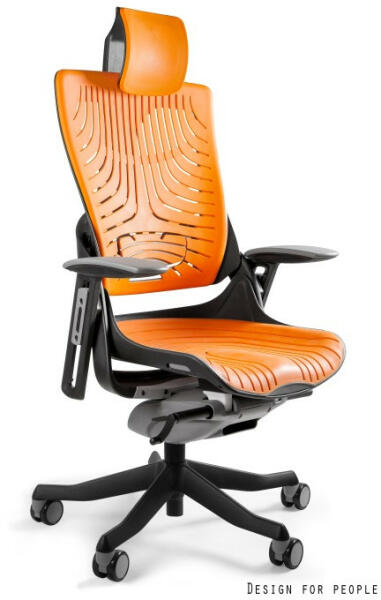 MERRYFAIR WAU 2 exkluzív vezetői irodai szék Különleges elasztomer háttámlával és ülőfelülettel, különleges narancs színben! Állítható magasságú és dőlésszögű fejtámlával Állítható magasságú háttámla Állítható mélységű deréktámasz "Csúszó" mechanizmus : Az ülés és a háttámla forgástengelye (vízszintes) a csípőízület közelében helyezkedik el.