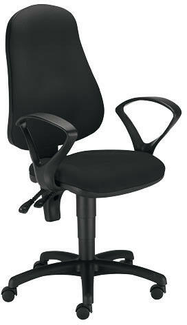 Irodai forgószék nem gyulladó szövet kárpitozású háttámlával és ülőlappal. Ergonómiailag formázott háttámla és ülőlap. Zárt kialakítású, fix műanyag karfa. Permanent contact mechanika. Fokozatmentes ülésmagasság állítás. Háttámla dőlésszög állítás és rögzítés adott pozícióban. Fokozatmentes háttámla magasság állítás és rögzítés adott pozíció