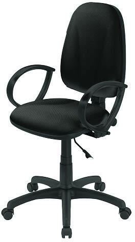 Irodai forgószék nem gyulladó szövet kárpitozású háttámlával és ülőlappal. Fix műanyag karfa. Fokozatmentes ülésmagasság állítás. Önbeálló háttámla, dőlésszög állítás és rögzítés adott pozícióban. Fokozatmentes háttámla magasság állítás. Háttámla mélység állítás. Fekete műanyag csillagláb. D. 50 terhelés vezérelt önfékező görgők kemény pa