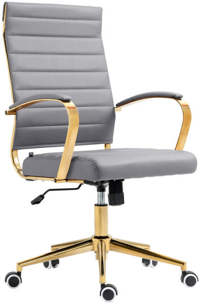 Havana modern Irodai forgószék műbőr szürke-arany Ez a műbőr irodai szék az elegáns dizájnt magas funkcionalitással és kényelemmel ötvözi. Az ergonomikus háttámla és a párnázott kartámaszok optimális tartást és kényelmes ülést biztosítanak. A szék állítható magasságú és 360°-ban elforgatható, ami maximális rugalmasságot és mozgásszabadságot tesz lehetővé