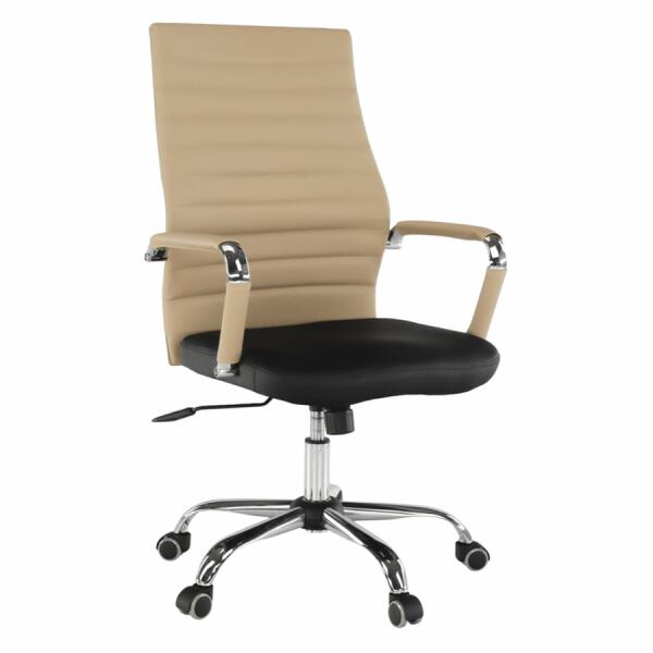 Irodai szék DRUGI 1 Anyag: műbőr/fém A textilbőr kopásállósága: 100 000 Martindale Színe: bézs/fekete/króm Méretek (SzéxMéxMa): 57x60x105-112,5 cm Állítható ülésmagasság : 45-53 cm Ülőrész mélysége : 44 cm Ülőrész szélessége : 49 cm Háttámla magassága: 50 cm Háttámla szélessége: 61 cm Terhelhetőség: 110 kg Gumis görgők Alkalmas fa és laminált padlóra eg