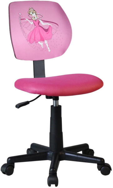Forgószék ZUMBO tündér mintás Forgószék ZUMBO tündér mintás Kényelmes rózsaszín ülőfelületű és háttámlájú forgószék, tündér mintával. A forgószék állítható magasságú. Méretei: (SzéxMéxMa) 38 x 45 x 77-89 cm A szék maximális terhelhetősége 70 kg. Az ülés magassága 41-53 cm.
