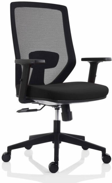 Irodai forgószék fekete hálós háttámlával, állítható deréktámasszal. Formatartó, hideg-poliuretán ülésszivacs. Szinkronmechanika (antishock). Szögletes műanyag lábkereszt, d. 60 görgők. Teherbírás: 110 kg. Napi használati idő: 8 óra. A terméket alapesetben dobozban, összeszerelés nélkül szállítjuk! Az egységár az összeszerelés díját nem tartalmazza, azonban l