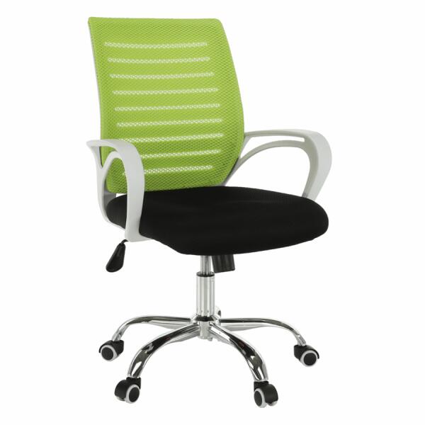 Irodai szék OZELA Anyag: háló/műanyag/fém A szövet kopásállósága: 90 000 Martindale Szín: zöld/fekete/fehér/króm Méretek (SzéxMéxMa): 53x60x91-101 cm Ülésmagasság: 44-54 cm Ülésmélység : 49 cm Ülésszélesség : 45 cm Háttámla szélessége: 45 cm Háttámla magassága: 50 cm Terhelhetőség: 110 kg - Mindigbútor