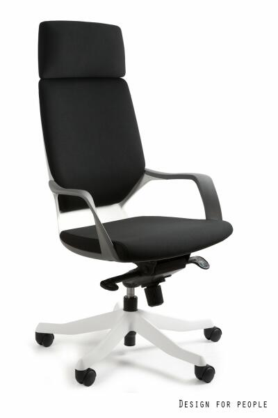 APOLLO modern formatervezésű főnöki forgószék Magas háttámlával Választható fehér és fekete váz színben, szürke kartámasszal A fejtámla, a háttámla és az ülés szövettel kárpitozott Állítható rugózási keménységű, több ponton rögzíthető MULTIBLOCK mechanika , hinta funkcióval Az ülőlap, a háttámla és a kartámasz összefüggő egységet alkotnak Fokozatment