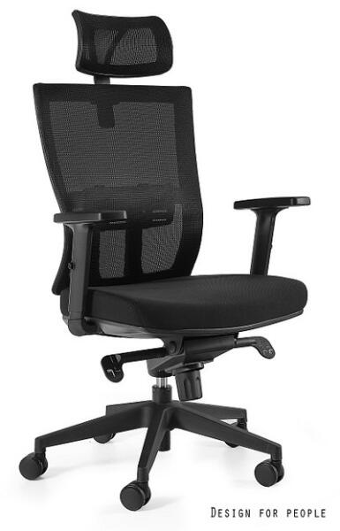 UNIQUE LINK ergonomikus irodai szék Fekete színben, fejtámlával Párnázott ülőfelület , finom tapintású, jól szellőző szövetkárpitozással Kiváló minőségű, "lélegző" hálóval kárpitozott háttámlával és fejtámasszal Állítható magasságú fejtámla Multiblokk mechanika , hinta funkcióval Fokozatmentes gázliftes magasságállítás 1D karfa Állítható magasságú d