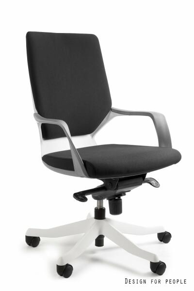 APOLLO M modern formatervezésű exkluzív irodai szék Alacsony háttámlával Választható fehér és fekete váz színben, szürke kartámasszal Állítható rugózási keménységű, több ponton rögzíthető MULTIBLOCK mechanika , hinta funkcióval Az ülőlap, a háttámla és a kartámasz összefüggő egységet alkotnak Fokozatmentes gázliftes magasságállítás A forgószék vázszín