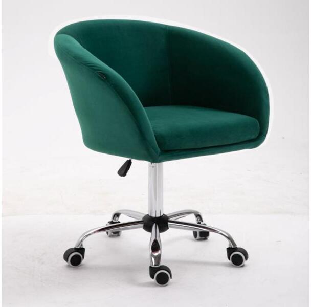 A félkör alakú háttámla és a párnázott ülés puha bársony szövet kárpitozású. A keret fém krómozott, 60 cm átmérőjű talppal és öt fedett dupla kerékkel fehér és fekete kombinációban. A szék 16 cm-rel elforgatható és magasságban állítható. Ülésmagasság: 52-67 cm. Max. teherbírása 100 kg. Méretei: 62x60x80-95 cm. - Mindigbútor