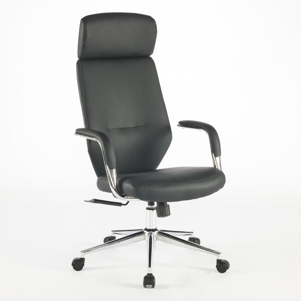 Magasságban állítható , dönthető , magas, formázott háttámlájú forgószék fehér burkolattal. Fehér műanyag ülőlap borítás. Opció : krómozott szárú, állítható magasságú karfa (BR WHITE), fehér műanyag támfelülettel. Krómozott gázlift . Krómozott, szögletes lábkereszt D. 65 parkettagörgőkkel. Teherbírás: 110 kg . A terméket alapesetben dobozban, összeszerel