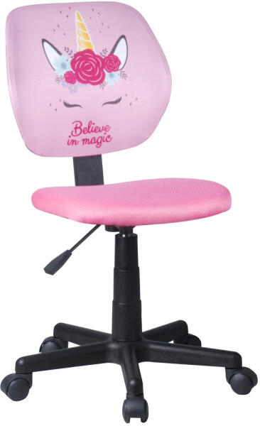 Forgószék ARIEL unikornis mintás Forgószék ARIEL unikornis mintás Kényelmes rózsaszín ülőfelületű, unikornis mintás rózsaszín háttámlával. A forgószék állítható magasságú. Méretei: (SzéxMéxMa) 40 x 50 x 81-86 cm A szék maximális terhelhetősége 80 kg. Az ülés magassága 38-52 cm.