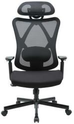 - hálós, magas háttámla - állítható magasságú és dőlésszögű fejtámla - állítható magasságú és mélységű deréktámasz - fekete kárpitozott ülőlap - 1D karfa, puha támfelület - szinkronmechanika (antishock) - fekete acél lábkereszt lábkereszt d. 700 - d. 50 görgők - teherbírás: 130 kg - napi használati idő: 7-10 óra - teljes magasság: 115-129 cm - ülésmagass