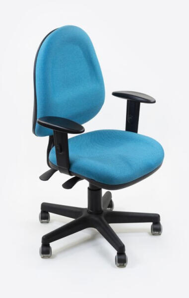 - állítható magasságú háttámla - ergonomikusan formázott, szögletes, dús és tartós szivacsozású háttámla és ülőlap - aszinkron mechanika, súlyhoz állítható - 2D karfa, puha támfelület - műanyag lábkereszt d. 640, d. 50 görgők - teherbírás: 110 kg - javasolt napi használati idő: 7-10 óra - karfák felszerelve - teljes magasság: 95-104 cm - ülésmagasság: 44-53 c