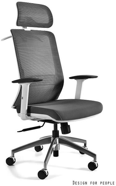 UNIQUE ASOS irodai szék Fehér váz, szürke háló és kárpit Állítható magasságú és dőlésszögű fejtámla Állítható magasságú deréktámasz Gázliftes magasságállítás 2D karfa : Állítható maggasságú karfa, puha tám felülettel Szinkronmechanika Vállfá val ellátott háttámla Mesh hálós fej és háttámla Szövetkárpitozású ülőlap Erősített műanyag váz és