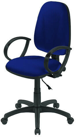 Irodai forgószék nem gyulladó szövet kárpitozású háttámlával és ülőlappal. Fix műanyag karfa. Fokozatmentes ülésmagasság állítás. Önbeálló háttámla, dőlésszög állítás és rögzítés adott pozícióban. Fokozatmentes háttámla magasság állítás. Háttámla mélység állítás. Fekete műanyag csillagláb. D. 50 terhelés vezérelt önfékező görgők kemény pa