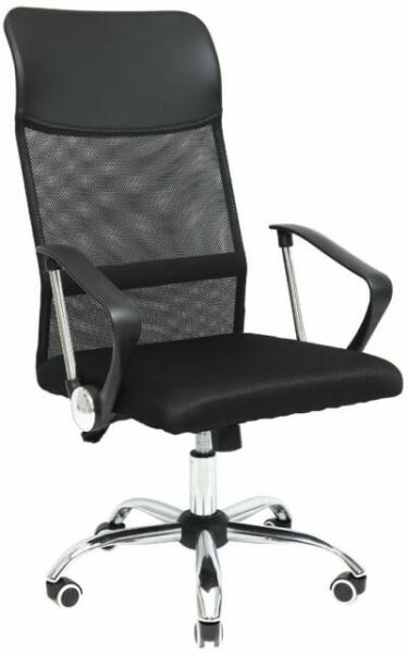 Mesh irodai forgószék, US 129, fekete - Mesh háttámlás irodai forgószék karfával, modern megjelenéssel. Görgős, fém csillaglábas kialakítása segíti a helyváltoztatást, beépített hintamechanikája megfelelő komfortot biztosít. Ülésmagassága gázlifttel állítható. Terhelhetősége 100 kg, háttámlája 67 cm magas. Az ülőfelület mérete 50x52 cm. Mérete: 106-116x63x61