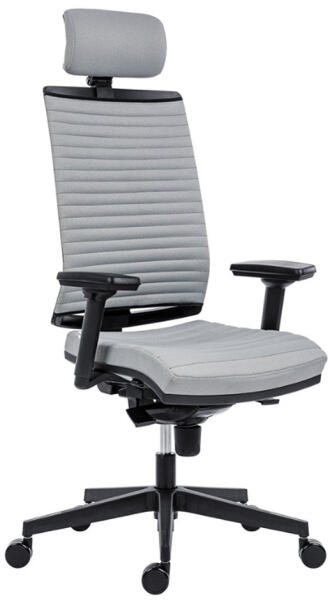 1850 OMNIA ribbed főnöki forgószék fejtámla opcionális Bordázott háttámla és ülőlap 3D állítható karfa (AR40), puha támfelület állítható dőlésszögű fejtámla a fejtámla 18 cm-rel növeli meg a szék magasságát 5 pontos szinkronmechanika (antishock) állítható ülésmélység magasságban állítható deréktámasz teherbírás: 110 kg parkettagörgőkkel fejtámla opci