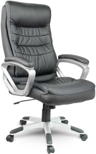 Ez az ergonomikus irodai szék ötvözi a kényelmet és az eleganciát, így ideális a hosszú munkanapokhoz. A minőségi PU-ból és PVC-ből készült fekete burkolat tartósságot és stílust biztosít, míg a párnázott karfák és a záródó billenőmechanizmus lehetővé teszi, hogy a felhasználó egyéni igényeihez igazítsák. Az állítható magasságú dugattyú rugalmasságot é