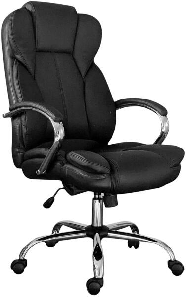 Steppelt irodai forgószék, US 132, fekete - karfás főnöki fotel, magas és nagyméretű háttámlával, sportos és modern kialakítással. Görgős, fém csillaglábas kialakítása segíti a helyváltoztatást, beépített hintamechanikája megfelelő komfortot biztosít. Ülésmagassága gázlifttel állítható. Ez a prémium kategóriás forgószék poliuretán kárpittal készült, így