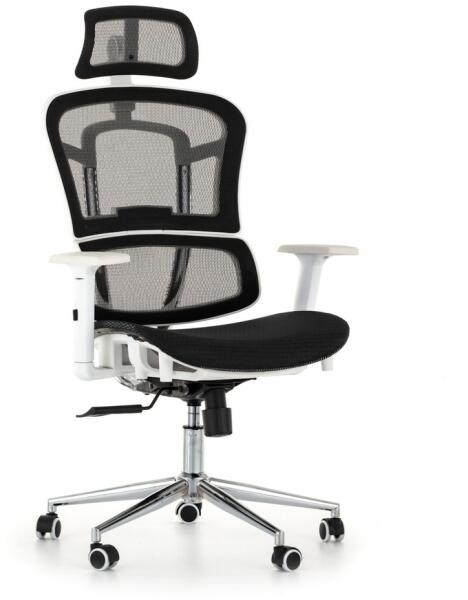 UNIQUE SCOPE vezetői irodai szék Középmagas hálós háttámla és fejtámla Állítható magasságú és dőlésszögű hálós fejtámla Állítható magasságú deréktámasz Állítható ülésmélység Fokozatmentes gázliftes magasságállítás Fekete szövet kárpitozású ülőlap 3D karfa , puha támfelülettel Szinkronmechanika Erősített műanyag lábkereszt Teljes magasság: 114-