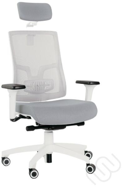 Ergonomikus irodai szék - Fehér irodai szék - Design görgők - Ergonómiát és jó szellőzést biztosító, hálós háttámla - Állítható deréktámasz, 3D kárpitozott fejtámla - Állítható ülésmagasság, ülésmélységés4D karfák - Állítható rugózási keménység - Szinkronmechanika: A testünkkel szinkronban mozgó háttámla csökkenti a derékra nehezedő nyomást. - Fek