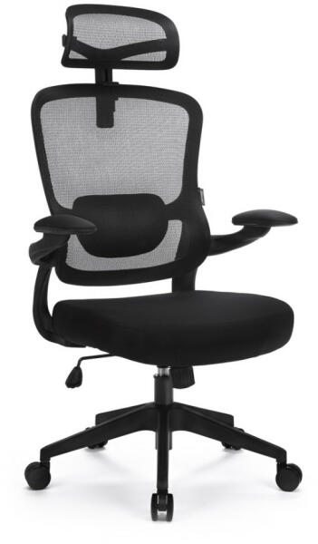 fekete hálós háttámla különálló, fix deréktámasz állítható magasságú fejtámla 1D karfa puha támfelület automata szinkronmechanika (antishock) műanyag lábkereszt d. 700, d. 60 parkettagörgőkteherbírás: 110 kg napi használati idő: 5-7 óra - teljes magasság: 117-127 cm - ülésmagasság: 45-54 cm - teljes szélesség: 70 cm - ülésszélesség: 50 cm - ülésmélység: 43