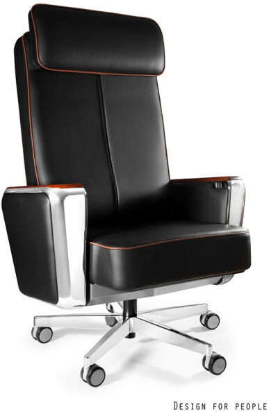 MERRYFAIR REGENT exkluzív vezetői forgószék Karfába integrált állítógombokkal Kiváló minőségű, valódi bivalybőr kárpitozás fekete színben Kontrasztos díszvarrással és élzárásokkal Extra kényelmes és tartós párnázás Önkiengyensúlyozó szinkronmechanika Fokozatmentes gázliftes magasságállítás Állítható magasságú fejtámla Öntött alumínium-ötvözet karfa