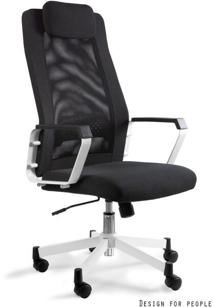 Gumikerekek - a gumikerekek használata azt eredményezi, hogy a padló nem karcolódik, és a szőnyeg sértetlen marad. A kerekek biztonságossá teszik a talajt, a mozgás pedig csendes és kényelmes. Az ötcsillagos talp dupla görgőkkel biztosítja a stabil mozgást. Kényelmes - profilozott, széles ülés és háttámla tökéletesen illeszkedik a testalkathoz. A magas, beépített fejtá